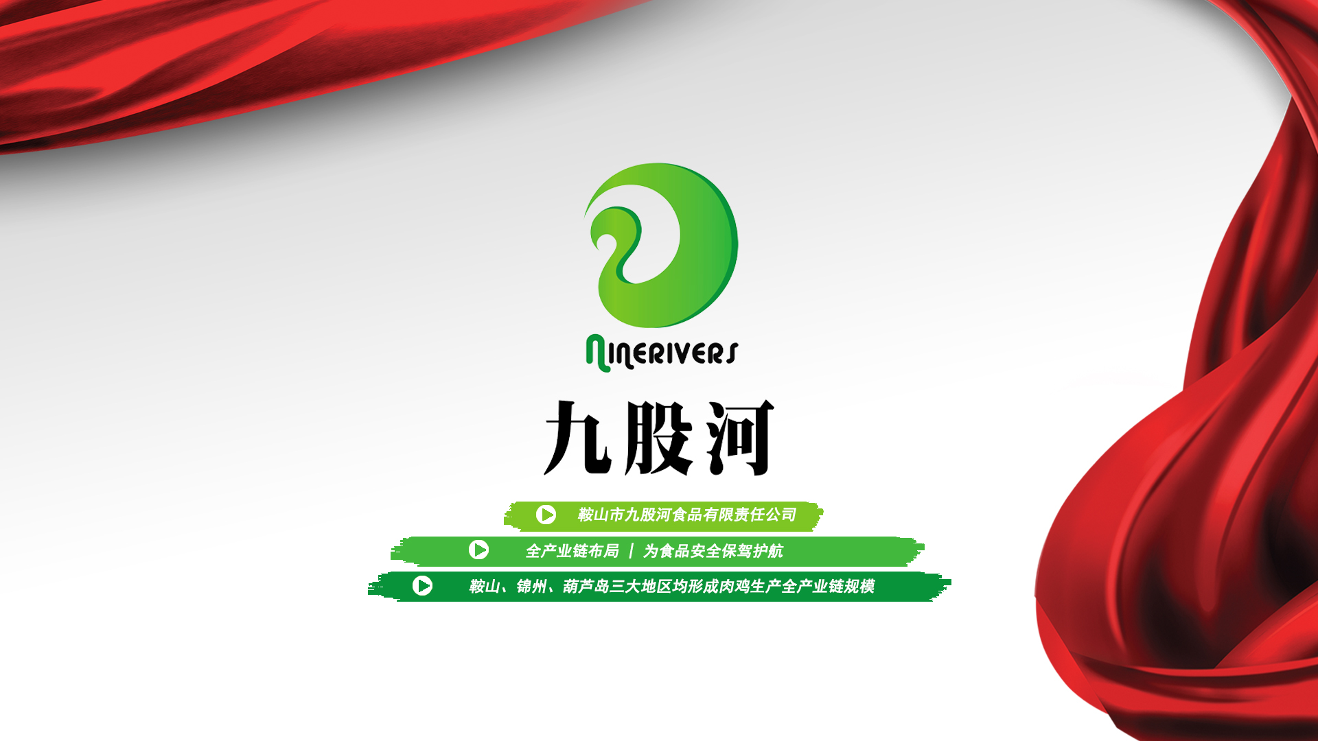 1997年丨九股河誕生于遼寧臺安,成立臺安縣九股河農業發展有限公司2003年丨九股河走進錦州市,在凌海成立凌海九股河食品有限公司2008年丨成立凌海九股河飼料有限公司2010年丨九股河與禾豐合作后,成立鞍山市九股河食品有限責任公司,從此,禾豐九股河走進了高速發展之路2011年丨繼續在遼西闊步,成立葫蘆島九股河食品有限公司同年,臺安縣九股河農業發展有限公司養殖部成立,按下規?;\養小區建設的快進鍵2